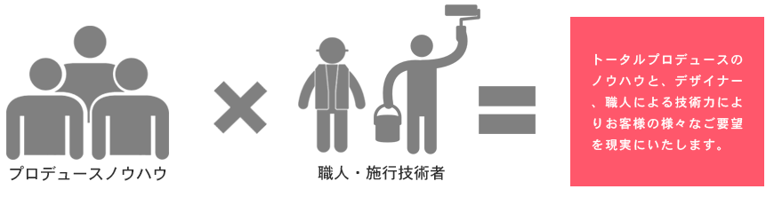 また、専門的な施行技術者による品質や価格の管理、交渉代行などもお手伝いさせていただくため、複数の業者に依頼するよりも低コストでお客様のご要望を叶える事が出来ます。
