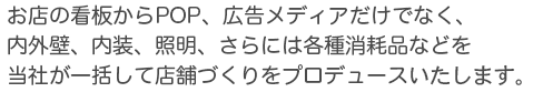 当社は広告メディアだけでなく内外壁、内装、照明、さらには各種消耗品などを 当社が一括して承ります。